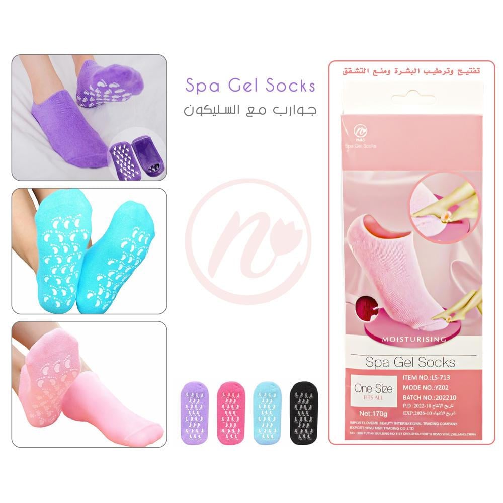 جوارب بكعب هلامي للأقدام المشققة مصنوعة من الهلام والقطن عالي الجودة وتمنحك الدفء والراحة، كما تفيد في ترطيب الجلد الجاف والمتشقق وتنعم الأقدام وتعالجها